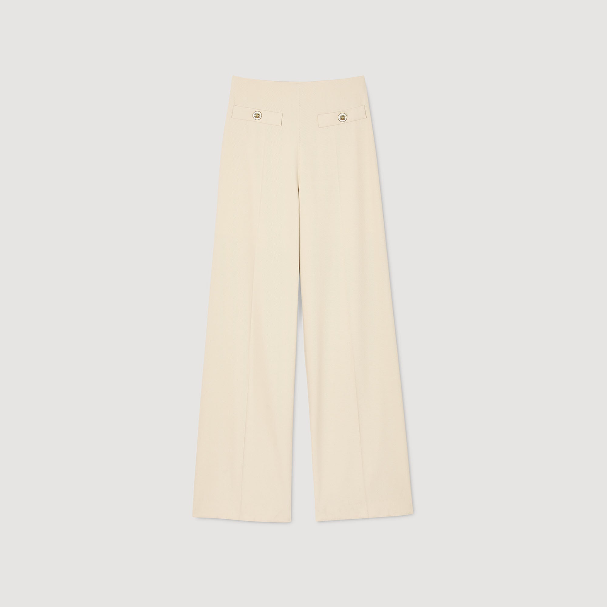 بنطلون بدلة عالي الخصر من قماش تويل مزيج من الصوف، مع جيوب واسعة وأزرار مزخرفة.