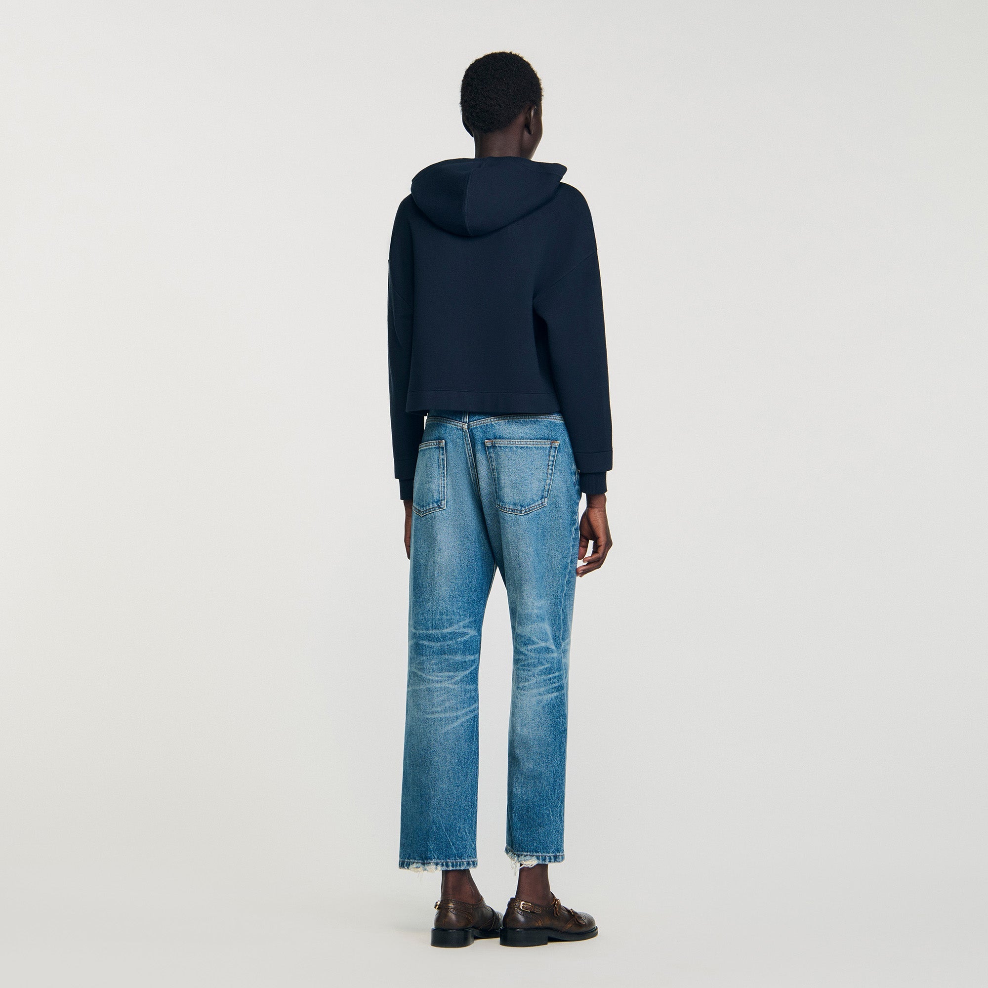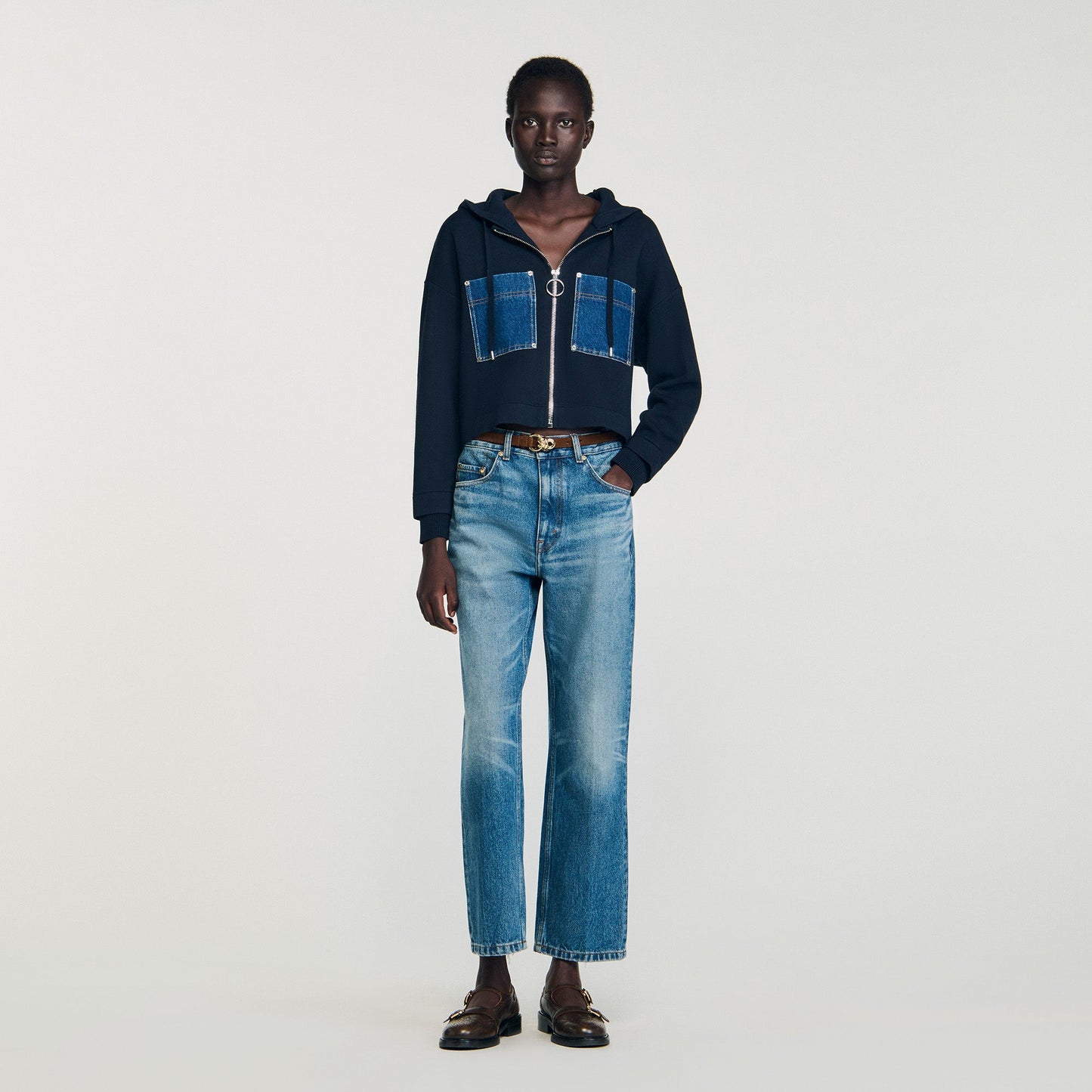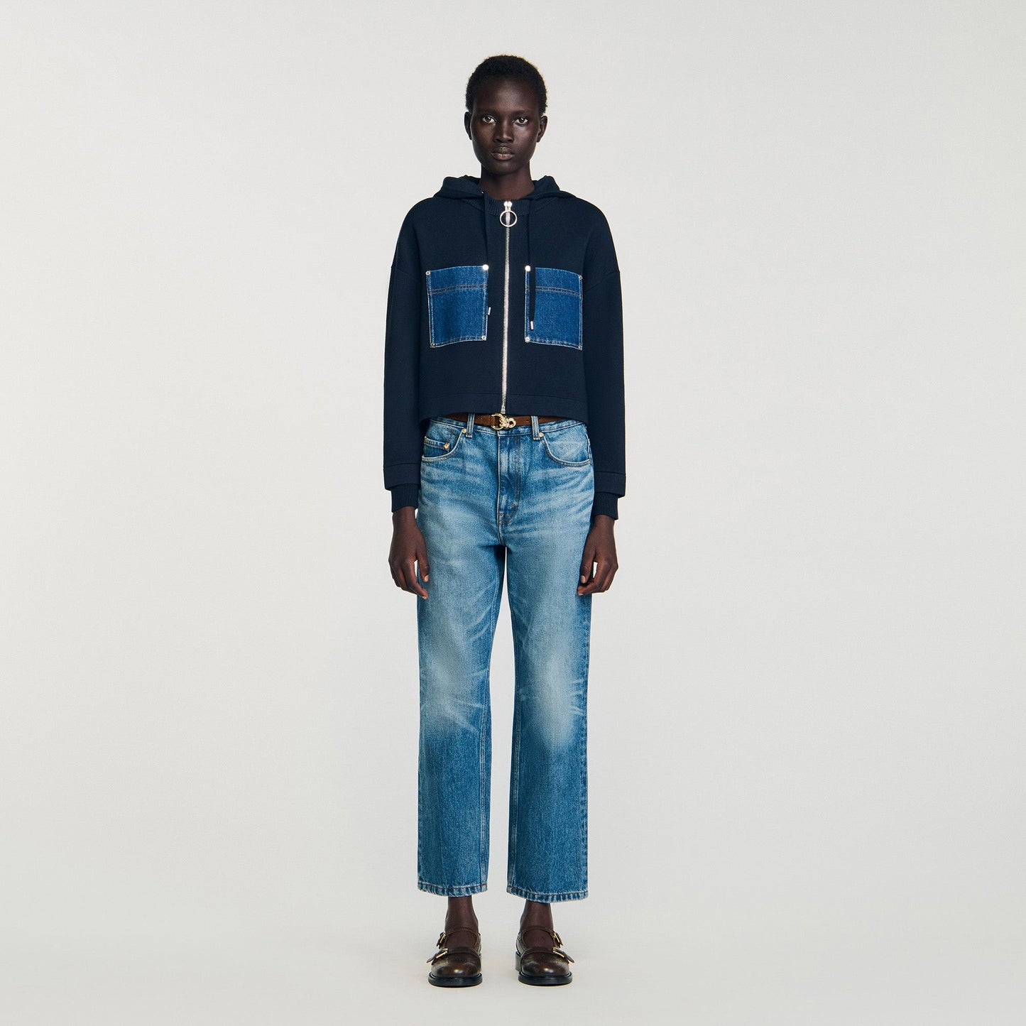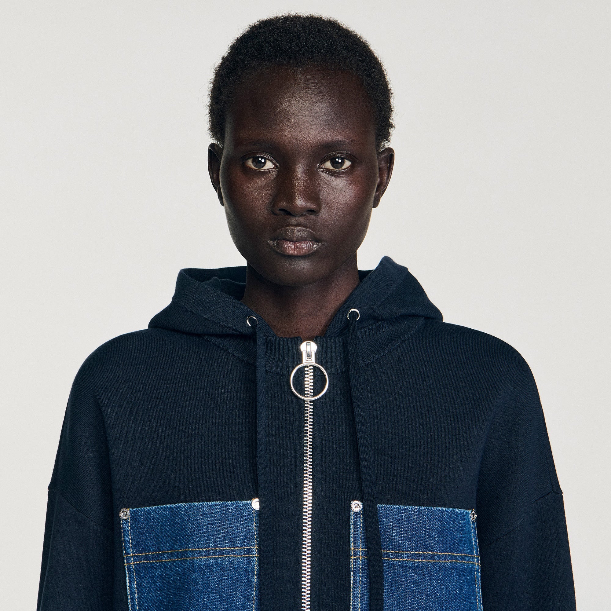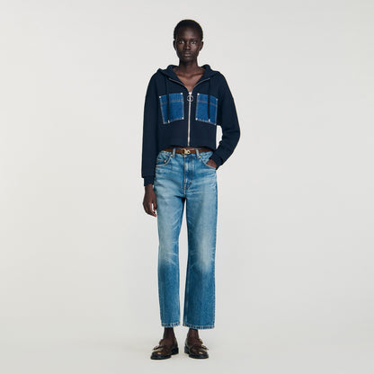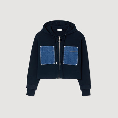 - Sandro Women's mixed denim knit sweatshirt