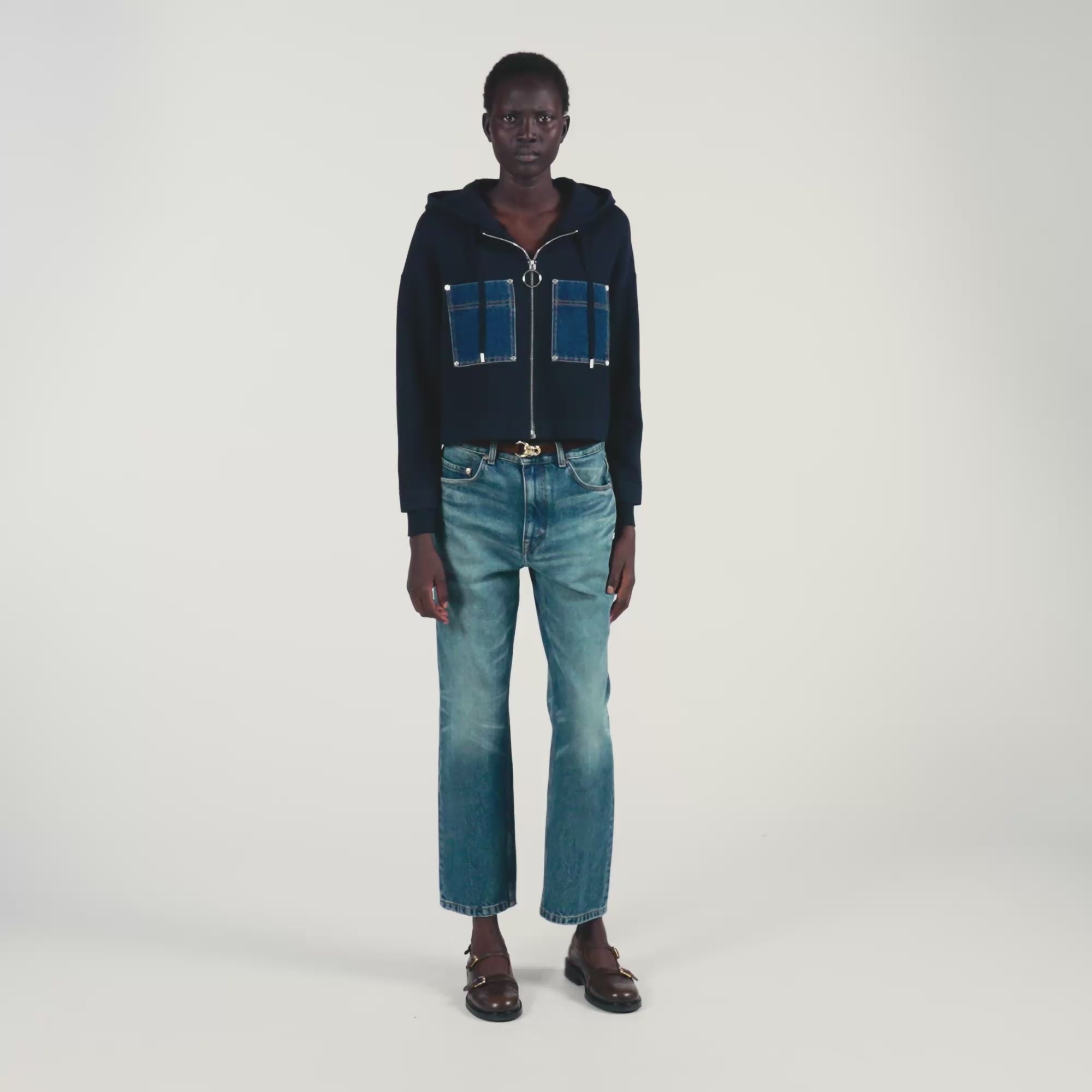 - Denim patch pocket with rivet